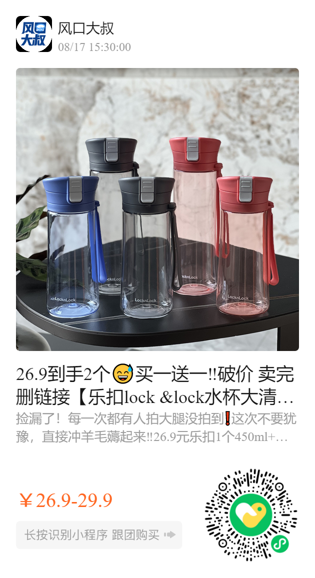 26.9到手2个😅买一送一‼️破价 卖完删链接【乐扣lock &lock水杯大清场】沃尔玛💰69元,本团仅需💰13.5❗