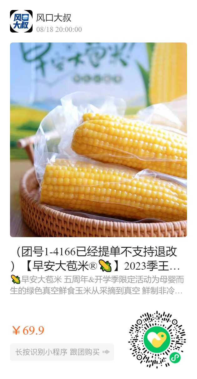 (团号1-4166已经提单不支持退改)【早安大苞米®🌽】2023季王者归来🌽为母婴而生绿色真空鲜食玉米. 日本进口食品级专业蒸煮袋. 保留鲜玉米近99%的口感和营养 无农残|非转基因|非速冻 除了爱 什么都不添加❣️