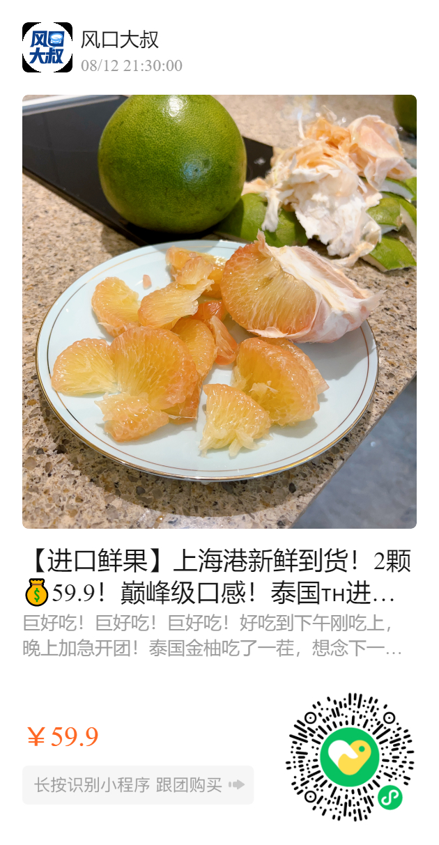 【进口鲜果】上海港新鲜到货!2颗💰59.9!巅峰级口感!泰国🇹🇭进口金柚蜜柚,补VC美白减肥,不贴秋膘!柚子控,减肥党都喜欢的9甜1酸黄金口感!