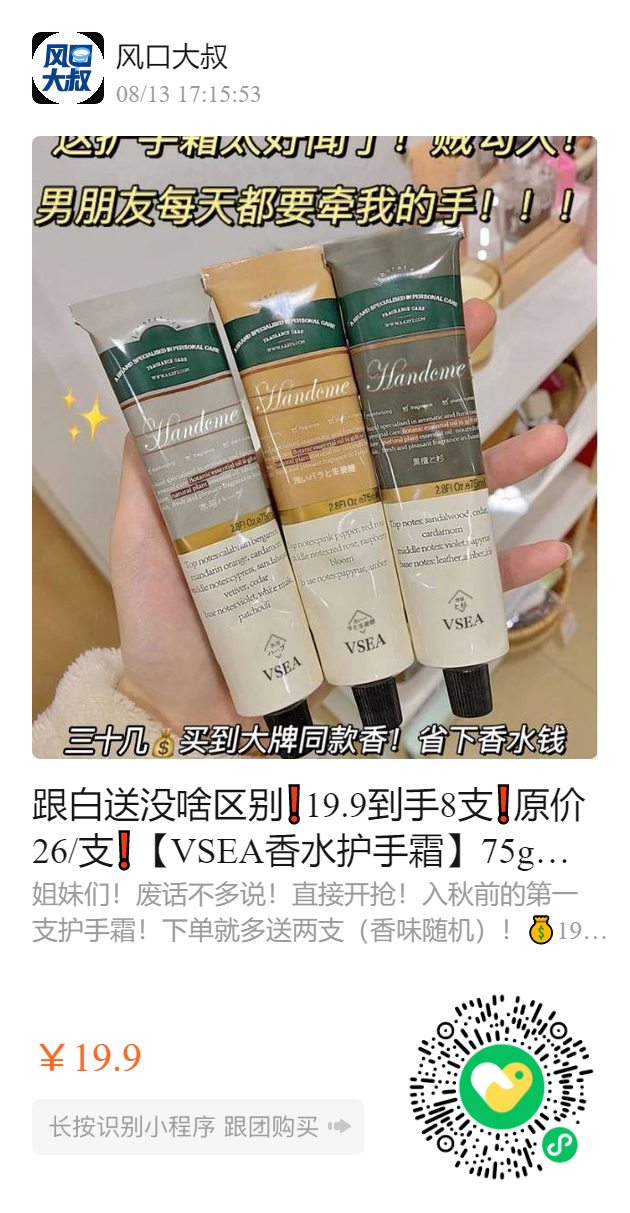 跟白送没啥区别❗️19.9到手8支❗️原价26/支❗️【VSEA香水护手霜】75g大容量!承包你一整个秋冬的护手霜!