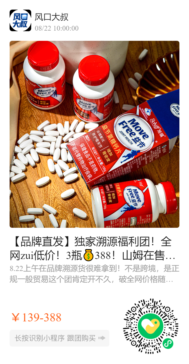 【品牌直发】独家溯源福利团!全网zui低价!3瓶💰388!山姆在售!蓝帽子+美国FDA认证!非其他线上版本,100%美国🇺🇸进口Move Free益节氨糖钙片80片/瓶