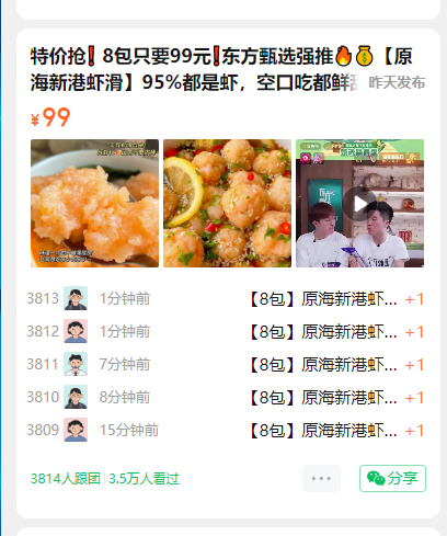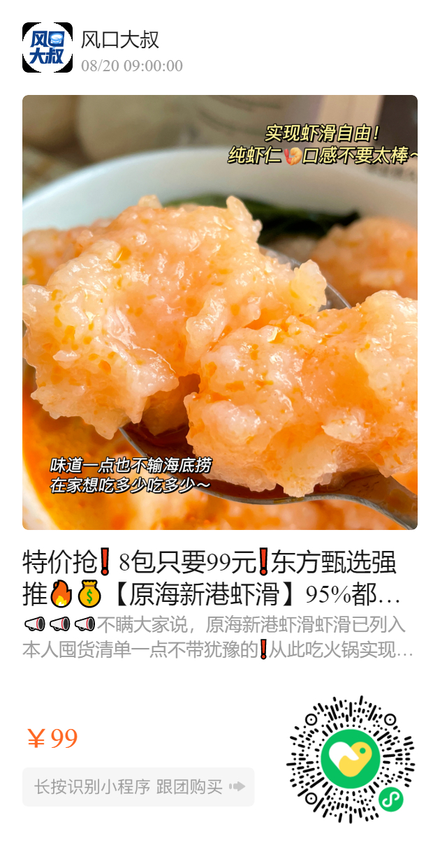 特价抢❗️ 8包只要99元❗️东方甄选强推🔥💰【原海新港虾滑】95%都是虾,空口吃都鲜甜🦐海D捞同款❗️肉眼可见的大颗粒虾仁‼️