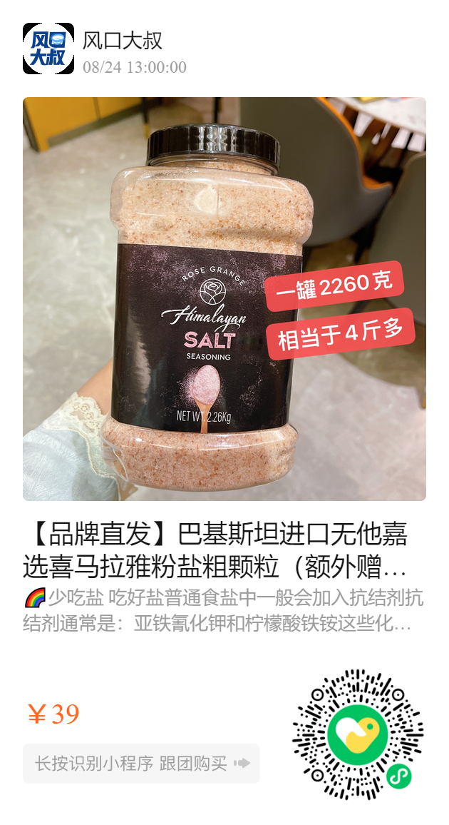 产品名称:巴基斯坦进口无他嘉选喜马拉雅粉盐粗颗粒