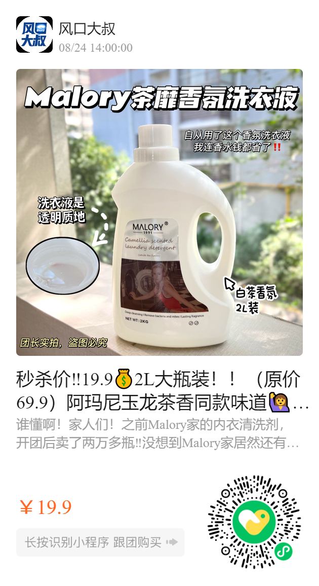 阿玛尼玉龙茶香同款味道🙋 澳洲🦘原装进口Malory茶靡香氛洗衣液!