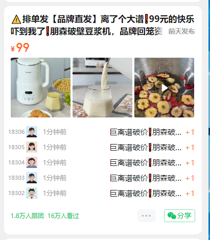 ⚠️排单发【品牌直发】离了个大谱❗️99元的快乐吓到我了❗️朋森破壁豆浆机,品牌回笼资金养工人破价清仓!全家早餐不发愁,食品级304不锈钢!