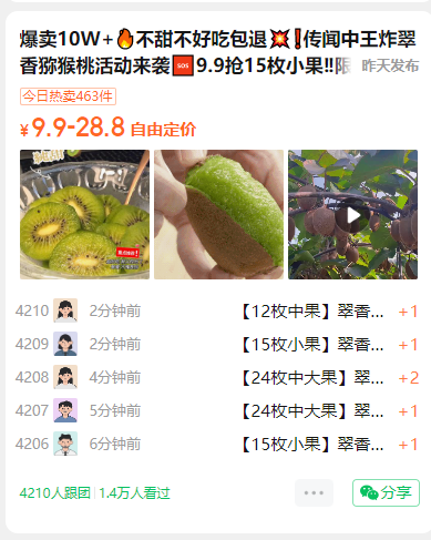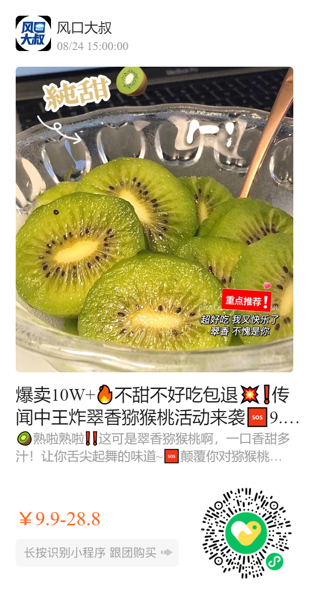 爆卖10W+🔥不甜不好吃包退💥❗️传闻中王炸翠香猕猴桃活动来袭🆘9.9抢15枚小果‼️限量2000单❗️抓紧冲~