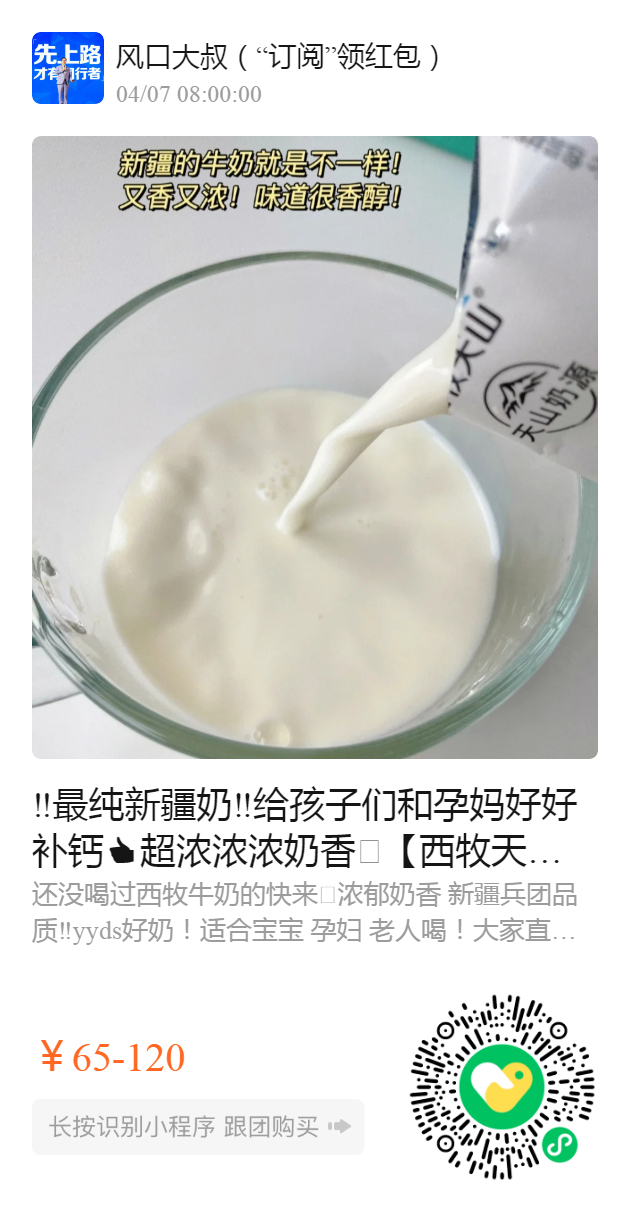 ‼️最纯新疆奶‼给孩子们和孕妈好好补钙 超浓浓浓奶香🥛【西牧天山纯牛奶】源自新疆 口感顺滑 奶香浓郁 自营牧场 兵团品质!不用去新疆也能喝到最正宗的新疆奶 100%生牛乳 每天早上来一杯 元气满满一整天!最新日期