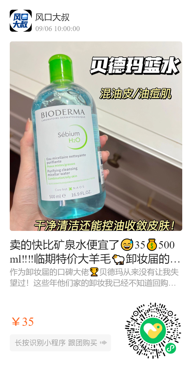 卖的快比矿泉水便宜了😅 35💰500ml‼️‼️临期特价大羊毛🐏 卸妆届的口碑大佬!! 💙贝德玛蓝色500Ml(主打水油平衡) 💦质地水一样的清爽肤感 上脸水润舒服!胶束科技高效清洁➕DAF皮肤配方➕高纯水纯净温和! 温温和和的不辣眼睛🙅🏻不油不闷也不会糊脸!