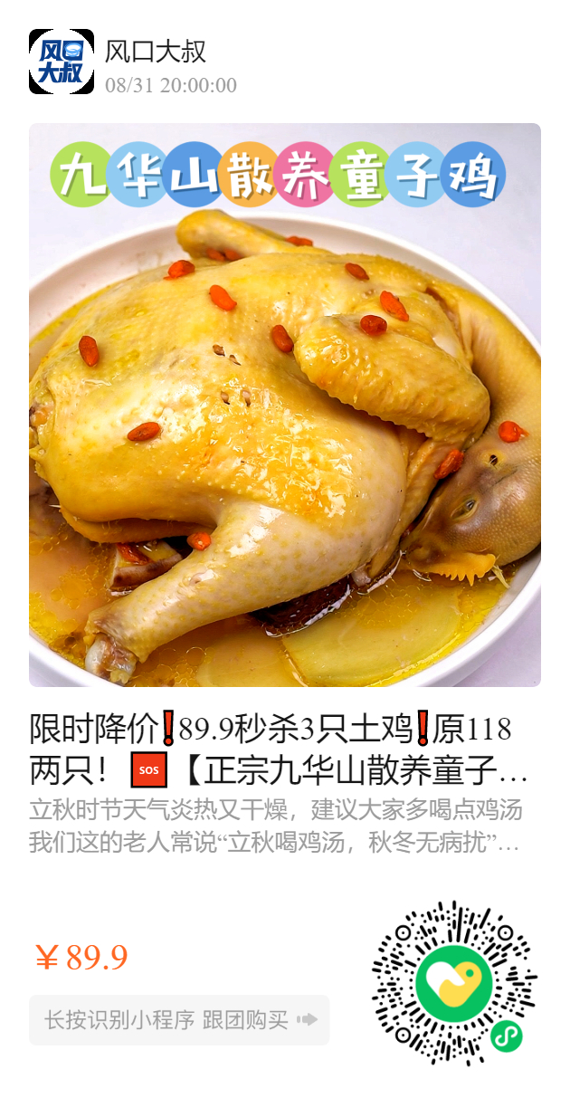 限时降价❗89.9秒杀3只土鸡❗原118两只!🆘【正宗九华山散养童子鸡土鸡】高蛋白滋补!青少年发育成长必备营养餐~