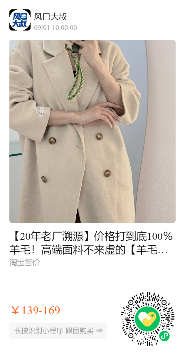 【20年老厂溯源】价格打到底100%羊毛!高端面料不来虚的【羊毛尼大衣】市场价1000+的品质,源头工厂 品质有保证!现反季特卖139元起 ▪️短款小香风+经典款双排扣大衣,奢牌成衣般极致高级 ▪️澳毛商场订制,含检测报告 ▪️一针一线手工缝制,高密醇厚、手感厚实,做工精细