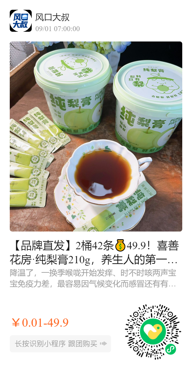 【品牌直发】2桶42条💰49.9!喜善花房·纯梨膏210g,养生人的第一杯秋梨膏❗换季降燥,润喉止咳,全家一起喝~