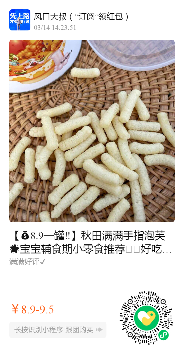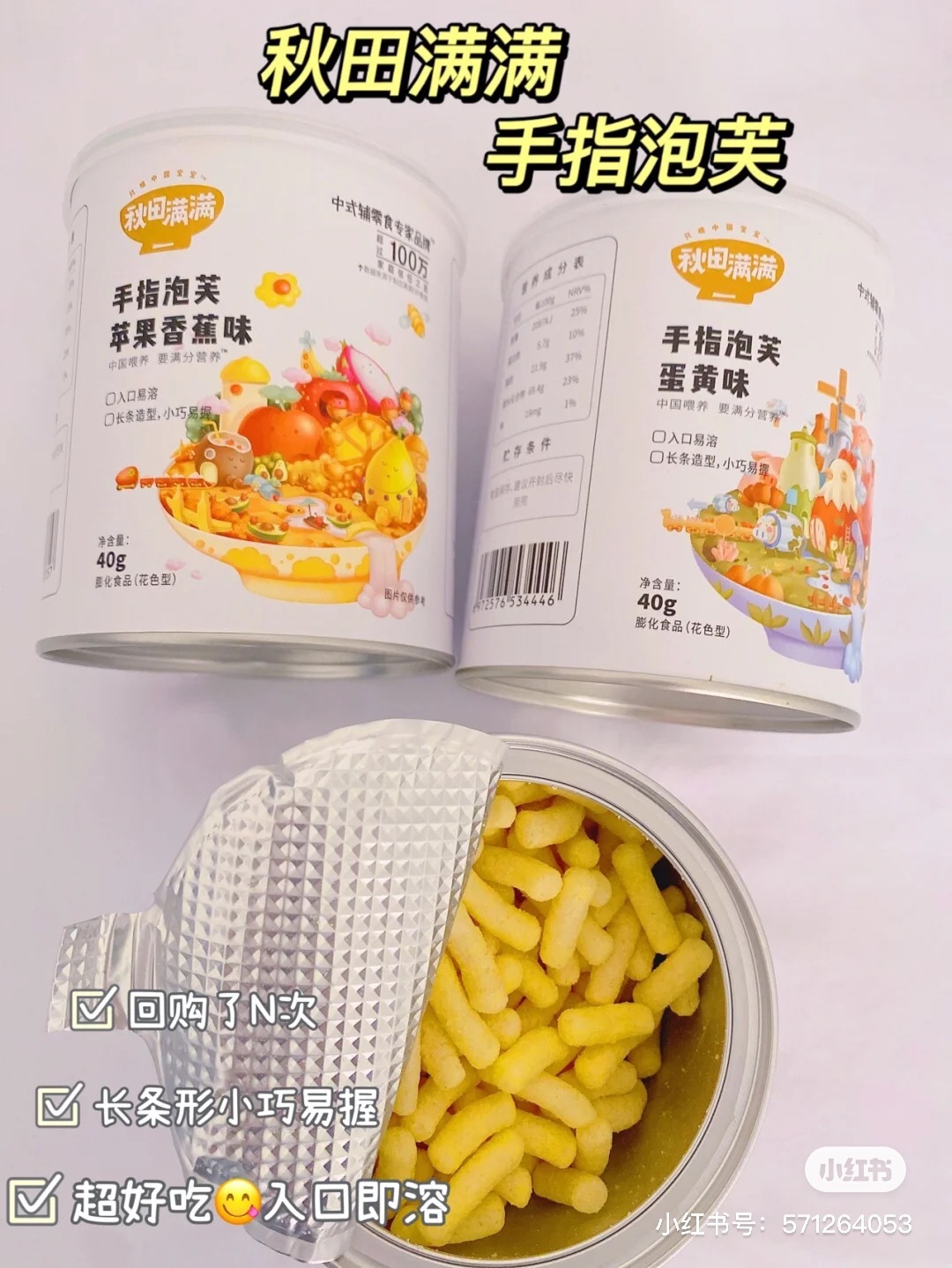 【8.9一罐‼️】秋田满满手指泡芙 宝宝辅食期小零食推荐🏻好吃 营养好还能练习宝宝抓握能力✔️ 无蔗糖️添加,入口即化不易卡喉🏻 旗舰店单罐就要29.9‼️现在咱们一罐只要8.9,4罐包邮 划算!快囤货‼️ 官方建议6个月以上宝宝食用🏻