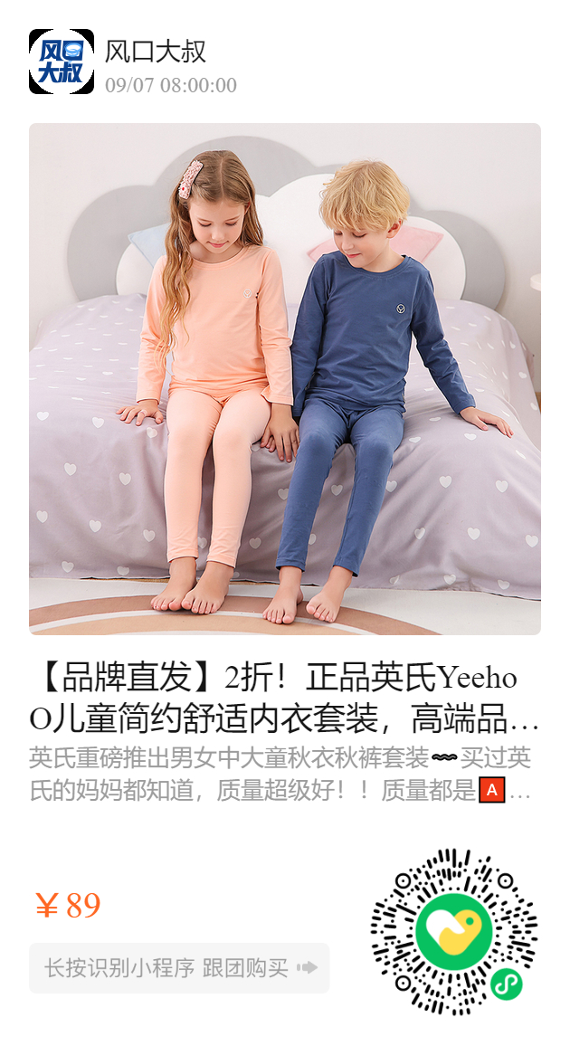 【品牌直发】2折!正品英氏YeehoO儿童简约舒适内衣套装,高端品质承载着千万宝妈的信任〰️