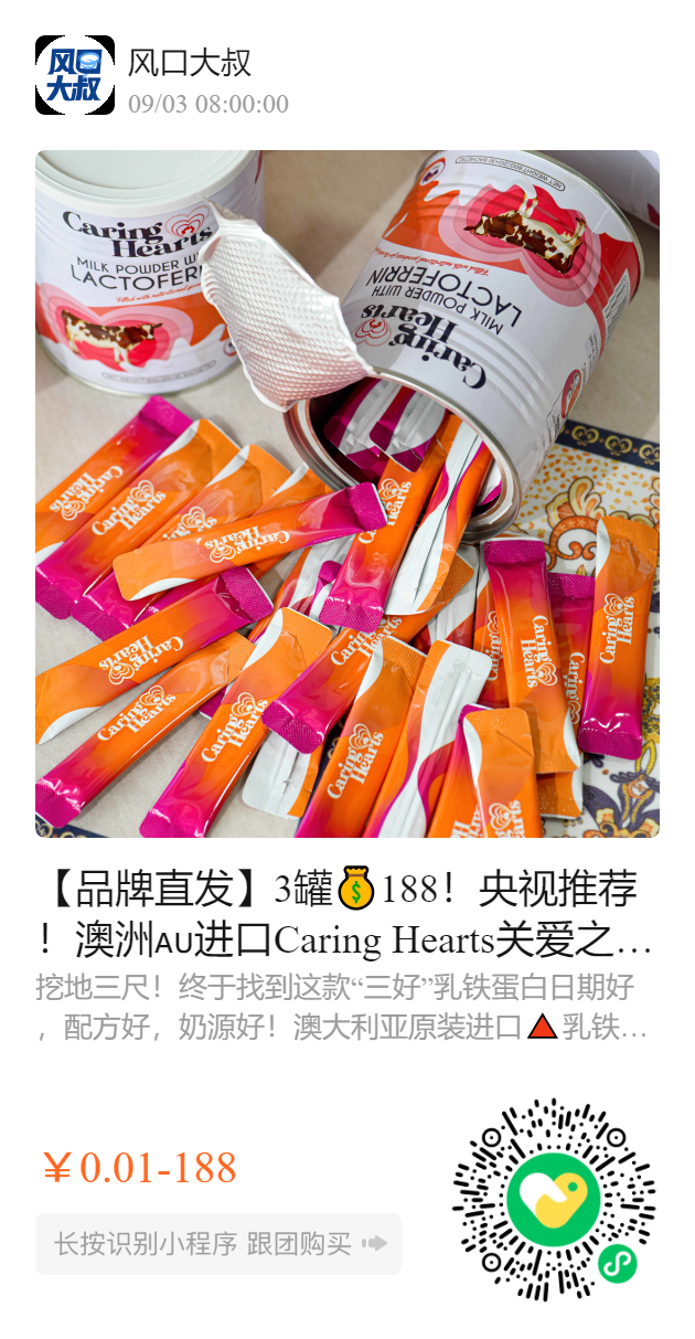 【品牌直发】3罐💰188!央视推荐!澳洲🇦🇺进口Caring Hearts关爱之心乳铁蛋白2g*30条/罐,增强免疫力,促进大脑发育!