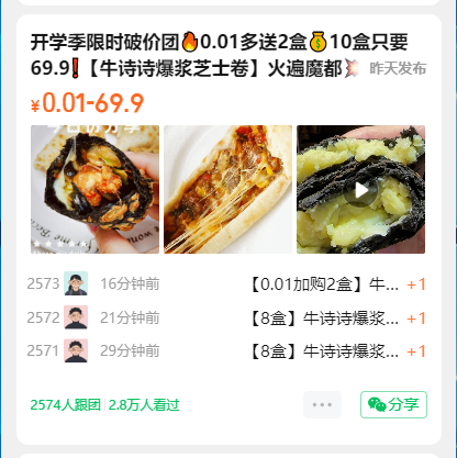 开学季限时破价团🔥0.01多送2盒💰10盒只要69.9❗️【牛诗诗爆浆芝士卷】火遍魔都💥这波羊毛必须薅起来❗️