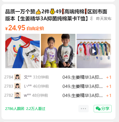 品质一万个赞👍2件💰49❗️高端纯棉❗️区别市面版本【生姜精华3A抑菌纯棉莱卡T恤】8色可选,男女童都能穿!2件起拍!