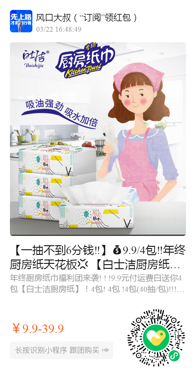 【一抽不到6分钱‼️】9.9/4包‼️年终厨房纸天花板 【白士洁厨房纸】原生木浆制作,双层加厚款,大尺寸 ✅️190mm×270mm,强效厨房去污 超强吸水性,擦拭厨房不费力,高密度3D立体压花✔️ 原生木浆🉑放心接触食品。