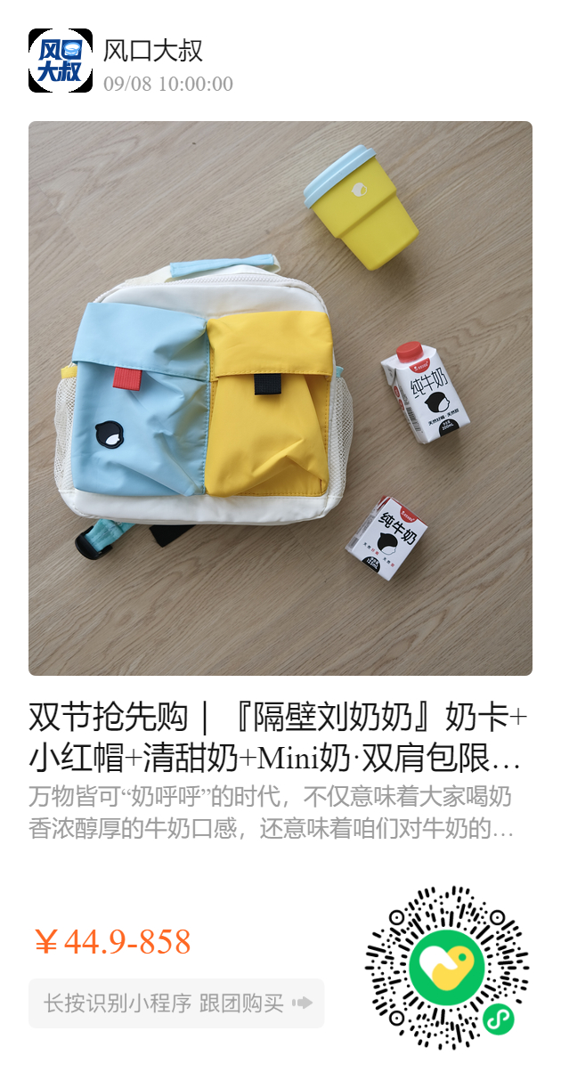 双节抢先购|『隔壁刘奶奶』奶卡+小红帽+清甜奶+Mini奶·双肩包限定回归·奶中黄金 营养多多·经典水牛配方 mini奶身材mini营养pro·专为小朋友量身定制水牛奶·天然好喝天然甜🍼 🔺双肩包赠品限定回归,超多赠品送到手软 🔺中秋国庆档活动开抢,到手低至3.81元/瓶