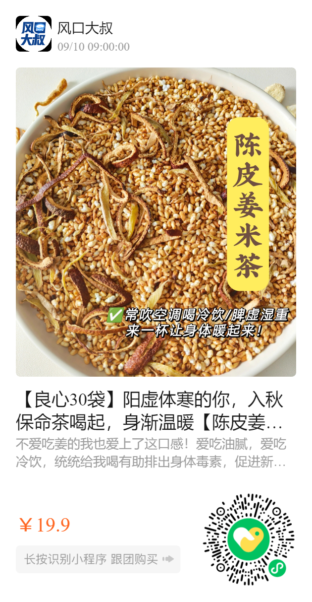 【良心30袋】阳虚体寒的你,入秋保命茶喝起,身渐温暖【陈皮姜米茶】扫除健脾、清湿排寒!是时候给身体来一次彻底的大扫除了