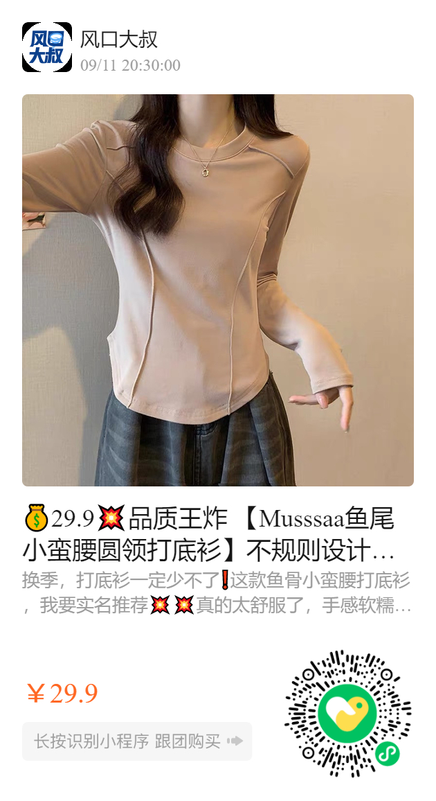 💰29.9💥品质王炸 【Musssaa鱼尾小蛮腰圆领打底衫】不规则设计感,穿出身材比例❗四季可穿,又纯又欲😆