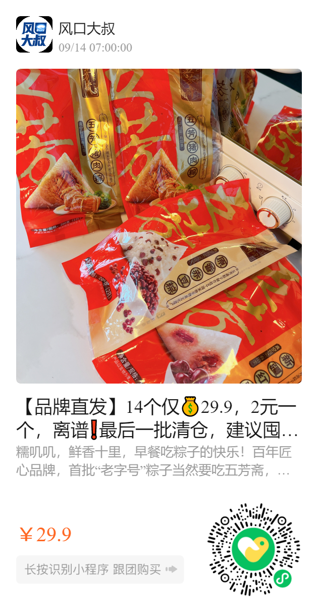 【品牌直发】14个仅💰29.9,2元一个,离谱❗最后一批清仓,建议囤全家的早饭!五芳斋粽子,端午节后粽子白菜价!此时不薅更待何时!每天早饭都有着落了!