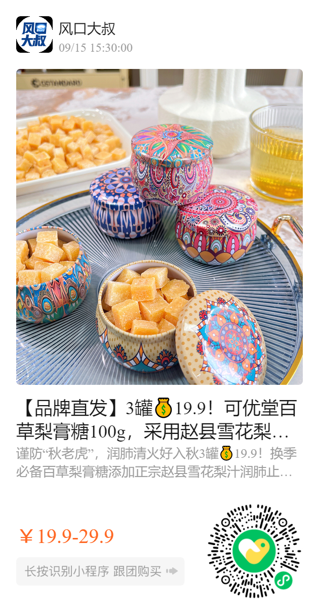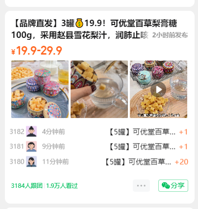 【品牌直发】3罐💰19.9!可优堂百草梨膏糖100g,采用赵县雪花梨汁,润肺止咳,通气祛火,全家人都需要!