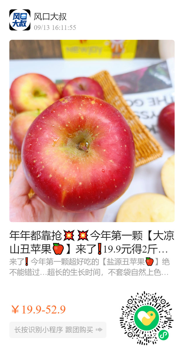 年年都靠抢💥💥今年第一颗【大凉山丑苹果🍎】来了❗️19.9元得2斤中大果! 我很丑,但是我超好吃😋😋😋 带皮直接啃😍有了它,再也不用吃冷库果! 💢靠近太阳,远离城市的高原盐源苹果 💢纯天然不套袋所以特别丑 💢果肉脆嫩,一咬下去就爆汁 💢这才是苹果应该有的味道!