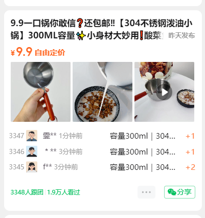 9.9一口锅你敢信❓还包邮‼️【304不锈钢泼油小锅】300ML容量✨小身材大妙用❗酸菜鱼/水煮肉片的灵魂(最后那一勺热油:次啦~~~