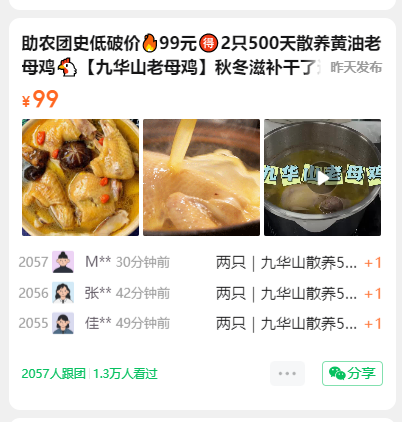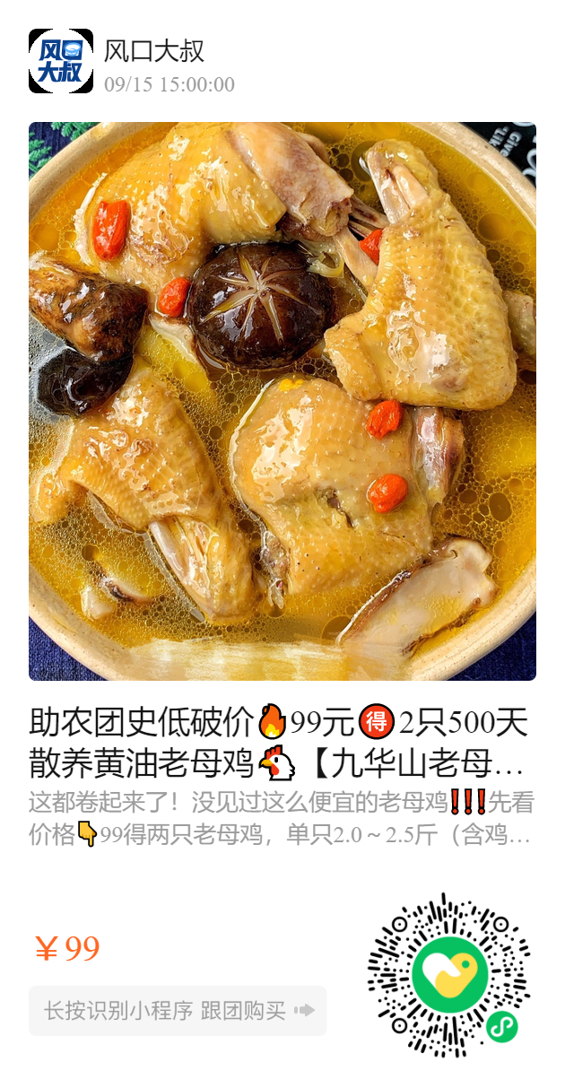 助农团史低破价🔥99元🉐️2只500天散养黄油老母鸡🐔【九华山老母鸡】秋冬滋补干了这碗鸡汤😋