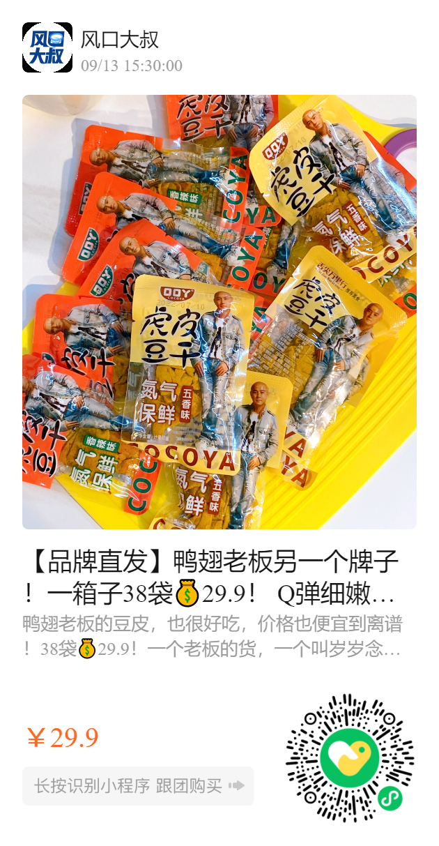 【品牌直发】鸭翅老板另一个牌子!一箱子38袋💰29.9! Q弹细嫩,太香了 !舌尖万里行推荐美食【口口丫虎皮豆干】!!一口气能吃20个!停不下来! ✅随身携带,开袋即食!好吃不贵 ✅独立包装,无防腐剂,氮气保鲜(非鼓包) ✅蛋白质爆炸,很解馋!越嚼越香! 新日期
