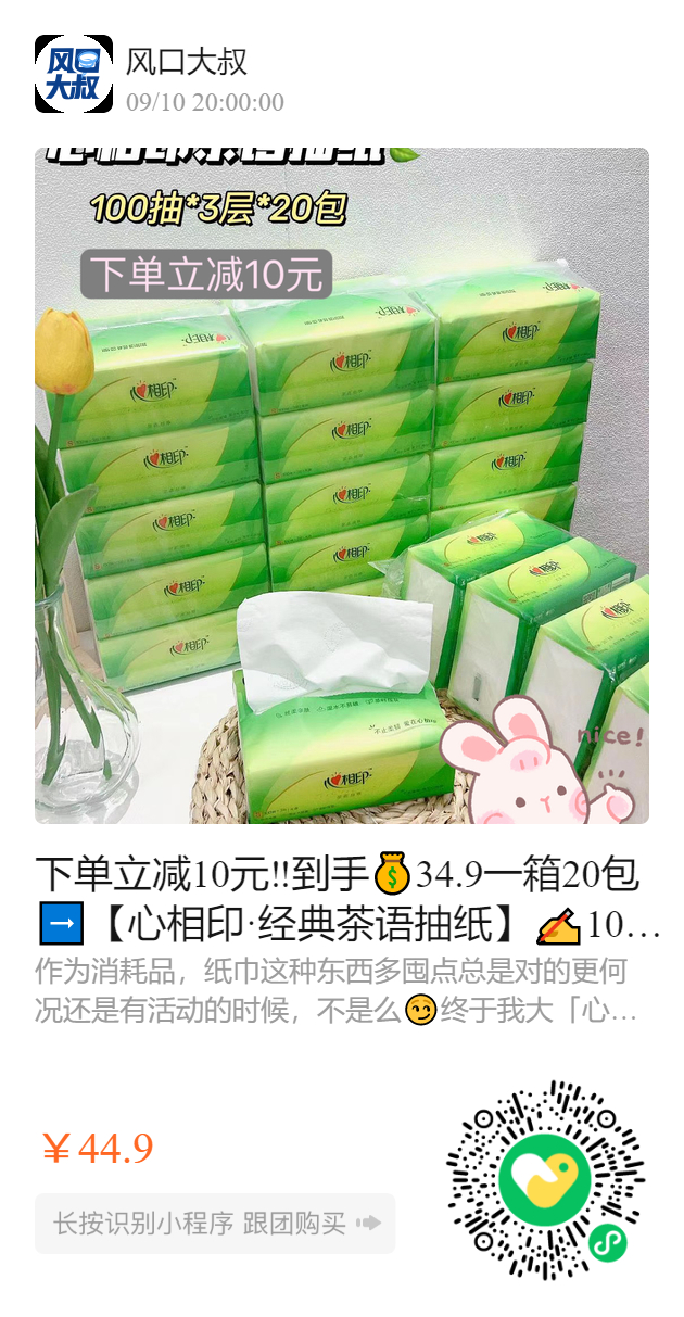 下单立减10元‼️到手💰34.9一箱20包➡️【心相印·经典茶语抽纸】