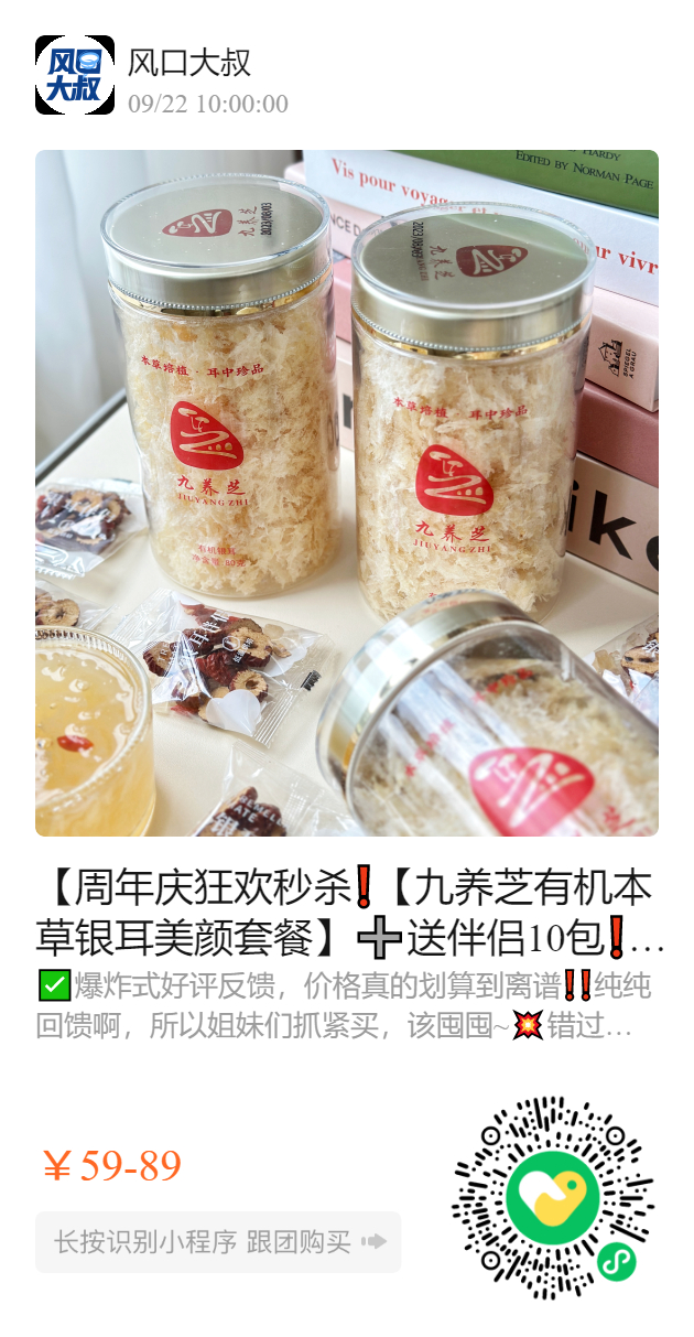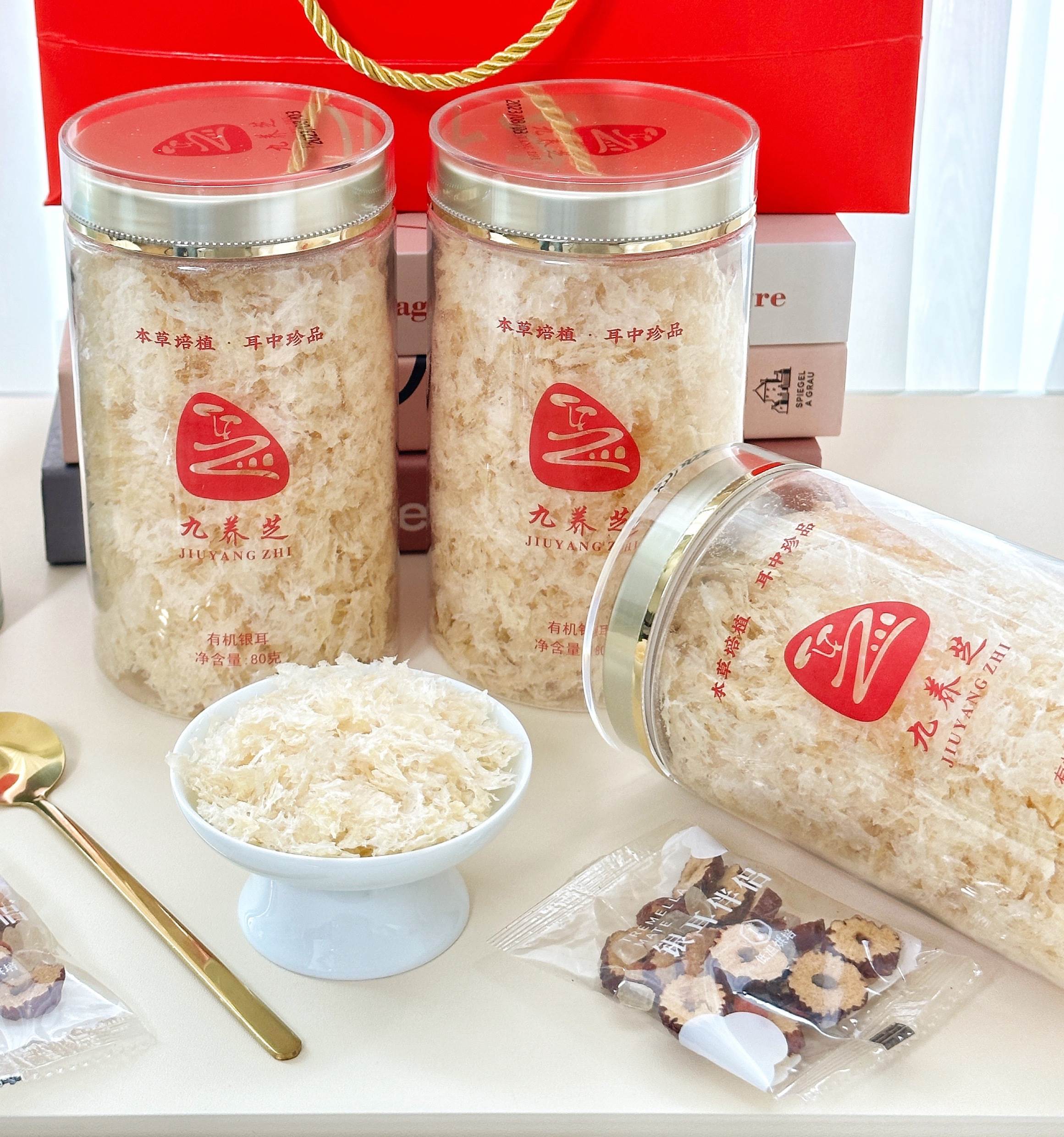 【周年庆狂欢秒杀❗️【九养芝有机本草银耳美颜套餐】➕送伴侣10包❗️ ⛔️免洗免泡,快速出胶!胶质是普通银耳的4倍💯是爱美女孩的美容养颜佳品~ ✅全链有机,中国有机产品认证!一瓶一码 ✅超级软糯香甜!一罐可连续吃40天~ 送礼自己吃巨划算❗️