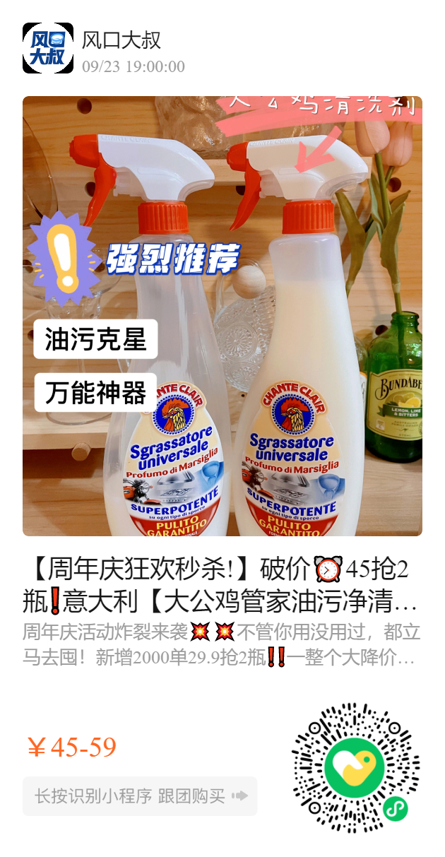 【周年庆狂欢秒杀!】破价⏰45抢2瓶❗️意大利【大公鸡管家油污净清洁剂】😍不管多脏的油污,用它喷一喷,快速溶解!去油能力超强💪 ✅马赛皂香味,不刺鼻,天然植物配方 ✅舒压喷头,可开关喷嘴,超级方便的! 厨房、洗手间、油烟机等…甚至是小白鞋衣服都能用❗️❗️