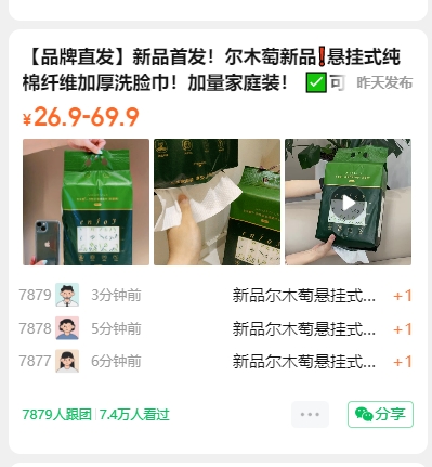 【品牌直发】新品首发!尔木萄新品❗️悬挂式纯棉纤维加厚洗脸巾!加量家庭装!