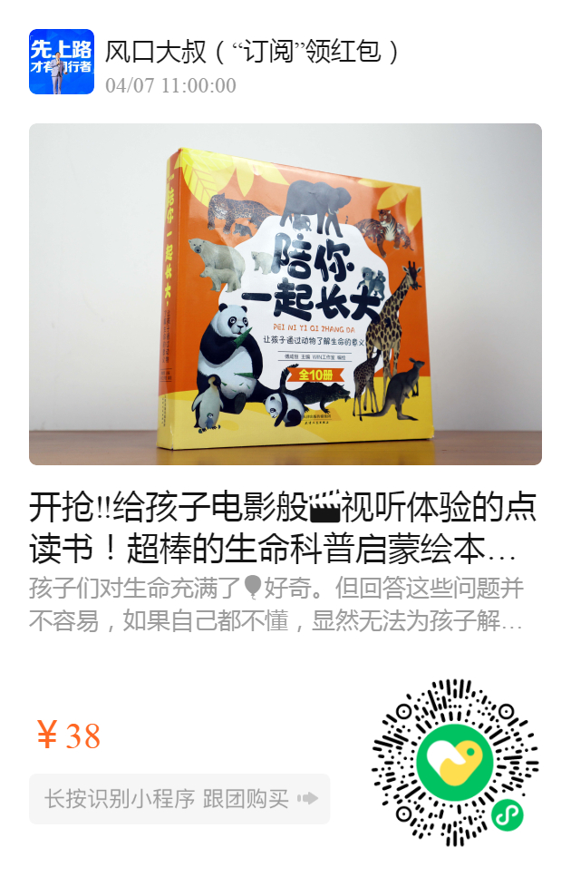 开抢‼️给孩子电影般视听体验的点读书!超棒的生命科普启蒙绘本 【点读版,支持小达人、小蝌蚪】正版《陪你一起长大》(全10册)一套集故事、科普🔭、生物🐅等于一体的动物绘本,引导孩子热爱️自然,帮助孩子塑造良好的品格!还支持小达人点读,没有点读笔也不要慌,扫码可获取伴读音频,超级省妈!