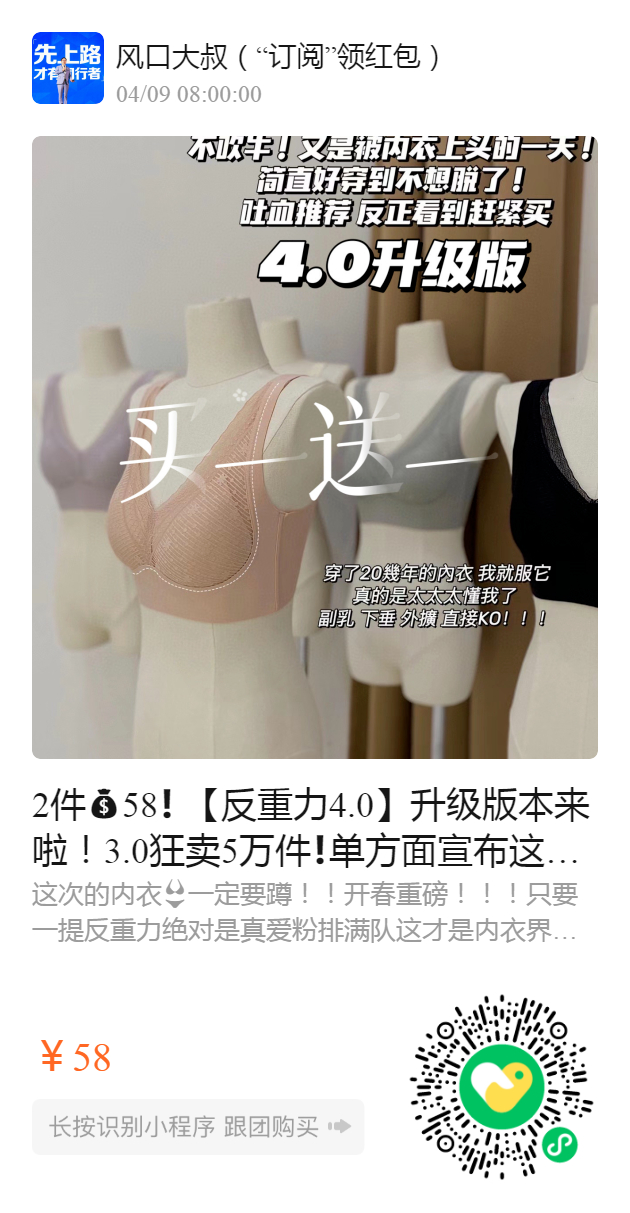 2件58❗️ 【反重力4.0】升级版本来啦!3.0狂卖5万件❗️ 单方面宣布这就是我穿过最好穿的内衣了! 舒服到睡觉都不想脱太爱💕了… 乳胶抗菌软弹上身提拉承托防下垂 侧收聚拢效果真的太优秀了!!! 开春重磅❗️第一波福利安排上❗️ ▔▔▔▔▔▔▔▔▔▔▔▔▔▔▔▔▔▔ 点击下方,直接购买