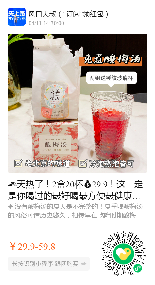 天热了!2盒20杯29.9!这一定是你喝过的最好喝最方便最健康的酸梅汤😋!