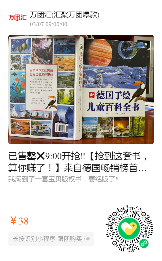 已售罄9:00开抢‼️【抢到这套书,算你赚了!】 来自德国畅销榜首,五星童书,错过一定后悔💥 正版精装大开本《德国手绘儿童百科全书》是一部经受了时间检验的经典,也是一部可以陪伴孩子成长的图画百科:近1000幅精美绝伦的手绘插图,让不识字的孩子也能被它深深地吸引!(适合3-15岁)