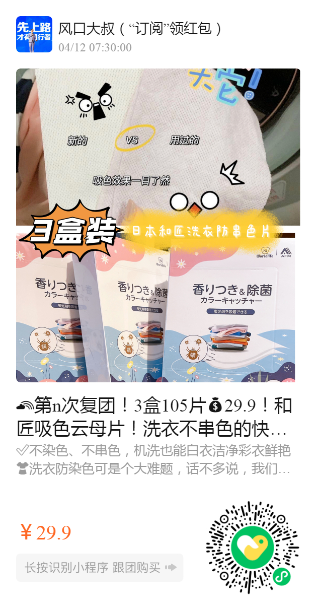 第n次复团!3盒105片29.9!和匠吸色云母片!洗衣不串色的快乐回来了!