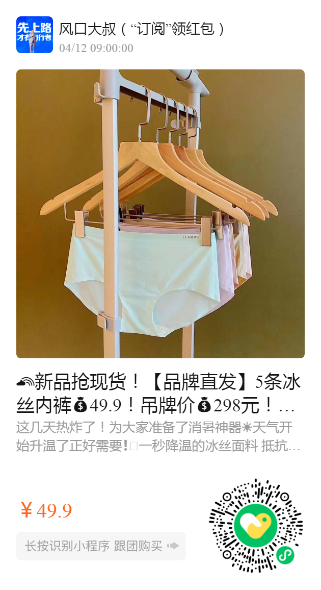 产品名称:5条冰丝内裤49.9