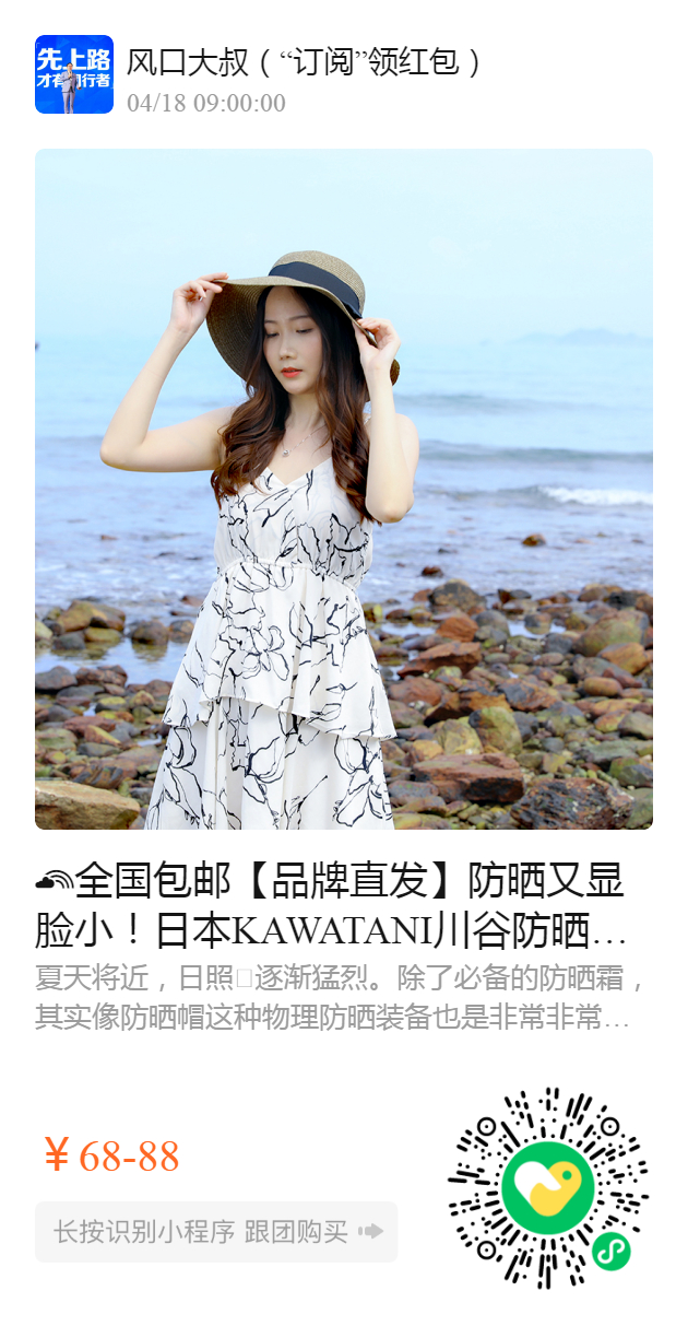 全国包邮【品牌直发】防晒又显脸小!日本KAWATANI川谷防晒帽,颜值和实用性并存,明星孙俪同款编制草帽遮阳率99%! 三个款式多个颜色随心选择,正品包装,自用送人都非常赞!68元起,小仙女们赶紧入
