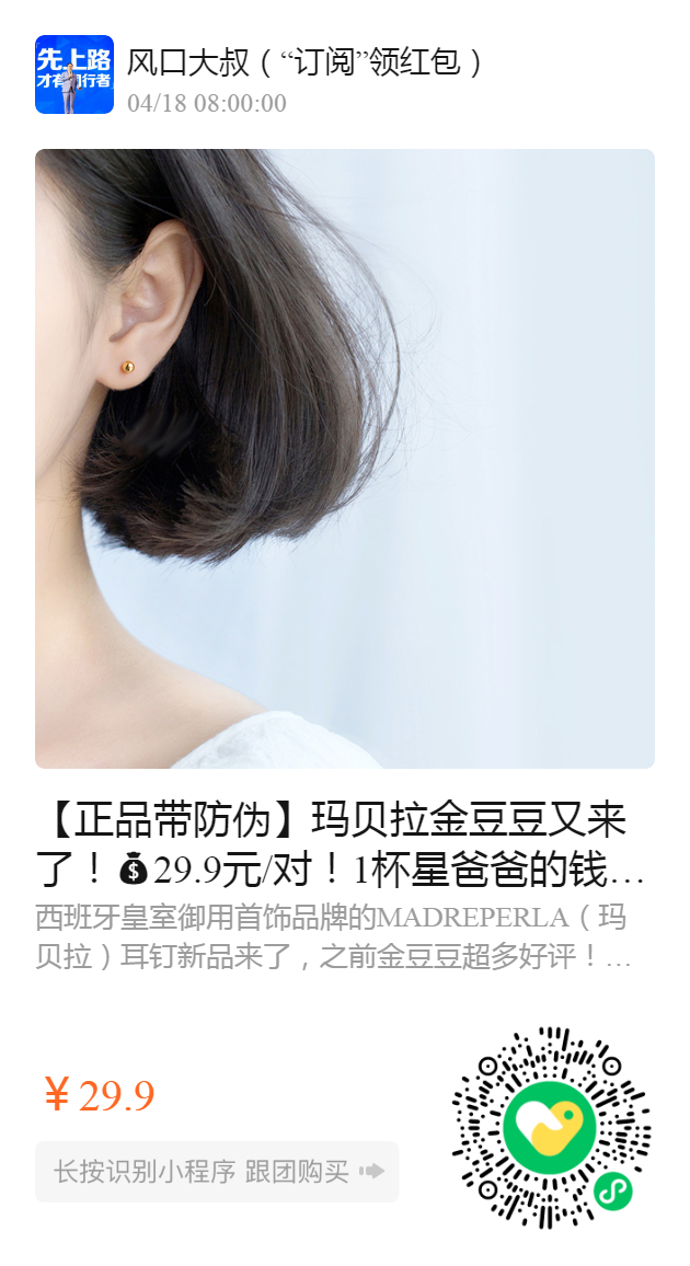 【正品带防伪】玛贝拉金豆豆又来了!29.9元/对!1杯星爸爸的钱,get西班牙大牌耳钉!正品西班牙皇室御用品牌MADREPERLA(玛贝拉)。