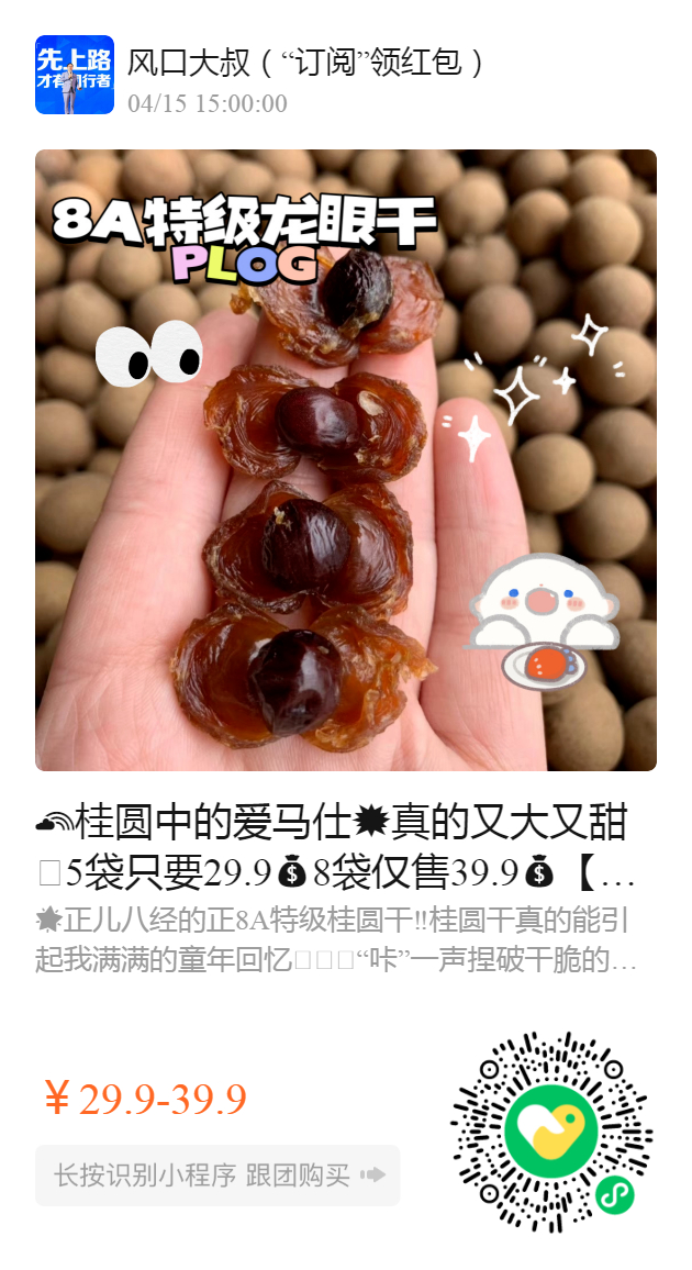 桂圆中的爱马仕💥真的又大又甜🥳5袋只要29.98袋仅售39.9【真正8A特级桂圆干】‼️精品质量肉质细腻Q弹甜而不腻 果肉软硬适中、不干瘪清爽不黏牙😋 香甜软糯在唇齿间翻涌一颗接一颗根本停不下来🉑️补血、养气、降脂、护心,安神,久服可以使人变聪明哦😆