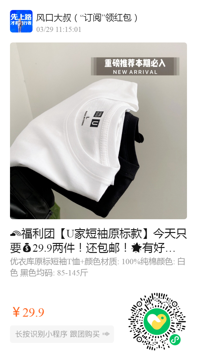 福利团【U家短袖原标款】今天只要29.9两件!还包邮!