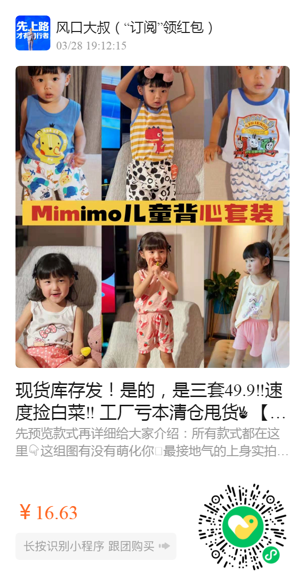 现货库存发!是的,是三套49.9‼️速度捡白菜‼️ 工厂亏本清仓甩货 【正品MIMIMO儿童套装】一模一样的某宝54.9一套,我们 49.9直接带走3套!还是上衣➕短裤套装!赚到哭了‼️