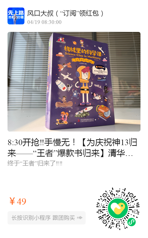 8:30开抢‼️手慢无!【为庆祝神13归来——“王者”爆款书归来】 清华大学博士、航天领域专家杨宇光倾情力荐 这套书聚焦在目前人类,尤其是中国重点发展的一些科技领域,如火箭科学、高速铁路、无人机、机器人等等……而我们未来的努力方向之一,就是在更多的领域追赶先进,实现赶超‼️