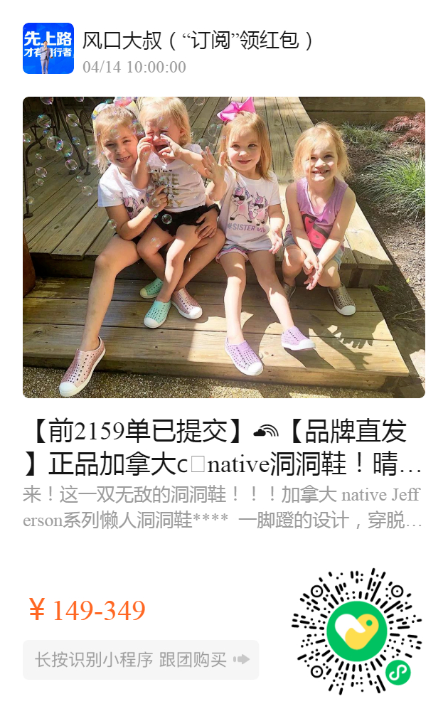 【前2159单已提交】【品牌直发】正品加拿大🇨🇦native洞洞鞋!晴雨都好穿,还有经典款德训鞋来啦!