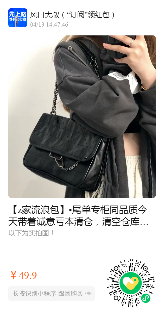 【z家流浪包】▪尾单 专柜同品质 今天带着诚意亏本清仓,清空仓库!绝不手软! 百搭程度秒杀任何包 真的是非常百搭噢~ 链条拼皮的 背起来也很舒服 推荐! 实拍!