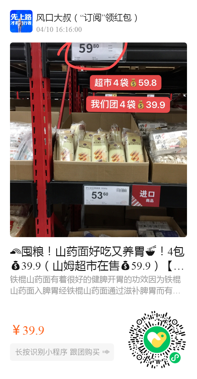 囤粮!山药面好吃又养胃!4包39.9(山姆超市在售59.9)【华字号怀铁棍山药面228g】121℃纯物理高温高压灭菌后真空独立包装! 铁棍山药面,采用黄河北岸温县优质小麦粉和怀府铁棍山药制作而成💯 先进生产工艺做工精细,易煮、口感软滑!