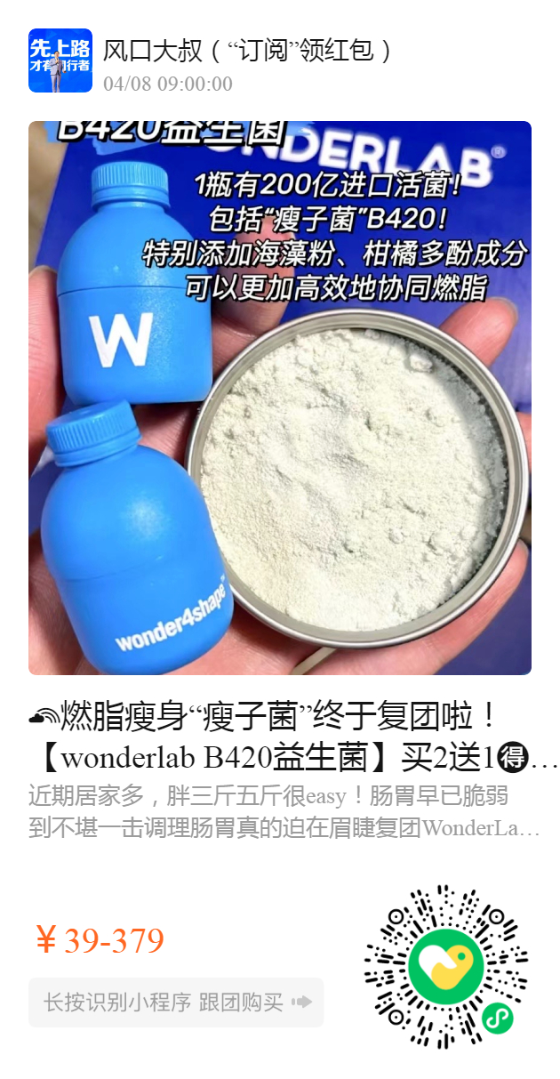 燃脂瘦身“瘦子菌”终于复团啦!【wonderlab B420益生菌】买2送1️3盒再送3袋补铁软糖!老爸测评推荐!
